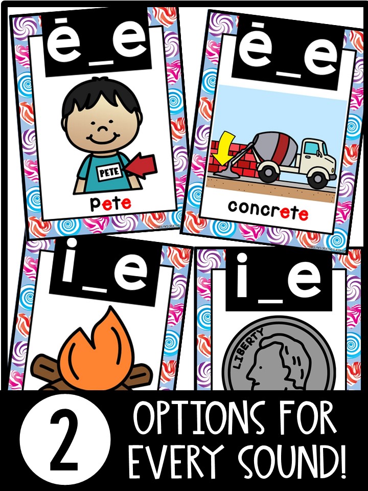 - Each Sound has 2 options to choose from! Each poster is in COLOR ONLY! Poster has a word with letters highlighted in red.