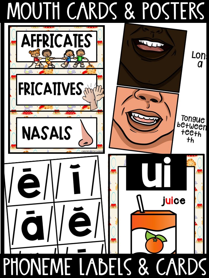 There are multiple ways to use these! Hang them on your sound wall, use them in a variety of centers or make them self correcting, or in a book (binded) to teach mouth positions during whole group or small groups!