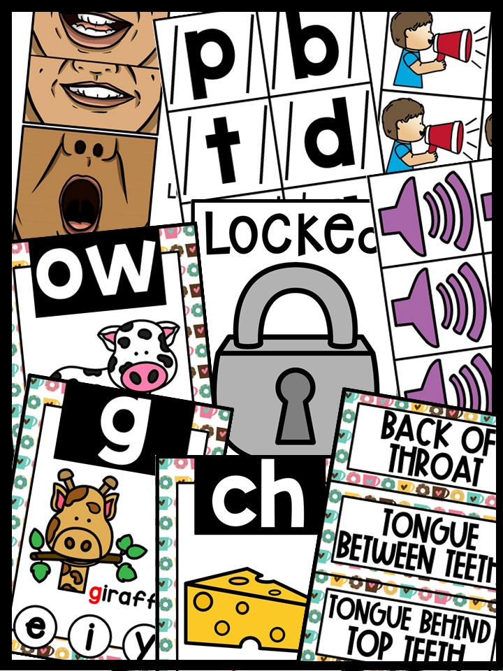 - 4 Locked Posters (Cover your sound wall. As you teach the phoneme uncover the cards beneath) 4 different versions. Comes in Color and B/W.