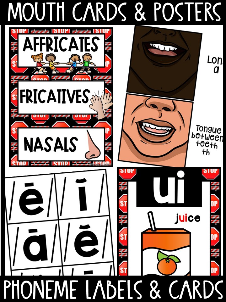 There are multiple ways to use these! Hang them on your sound wall, use them in a variety of centers or make them self correcting, or in a book (binded) to teach mouth positions during whole group or small groups!