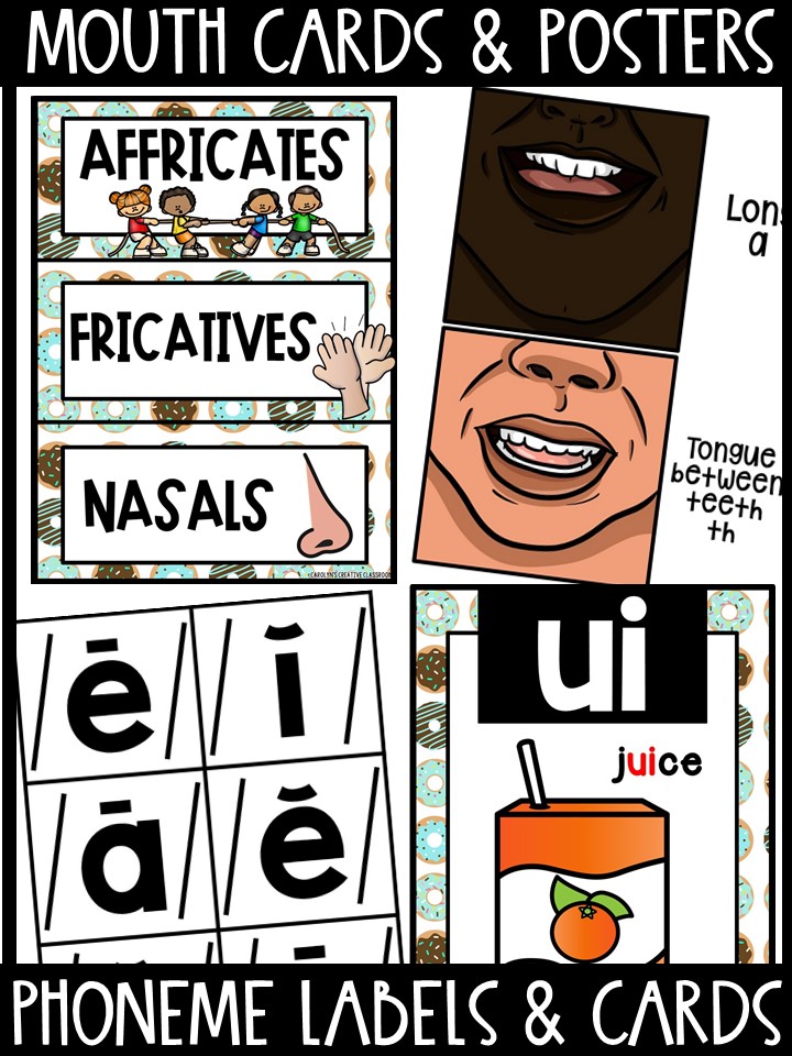 There are multiple ways to use these! Hang them on your sound wall, use them in a variety of centers or make them self correcting, or in a book (binded) to teach mouth positions during whole group or small groups!