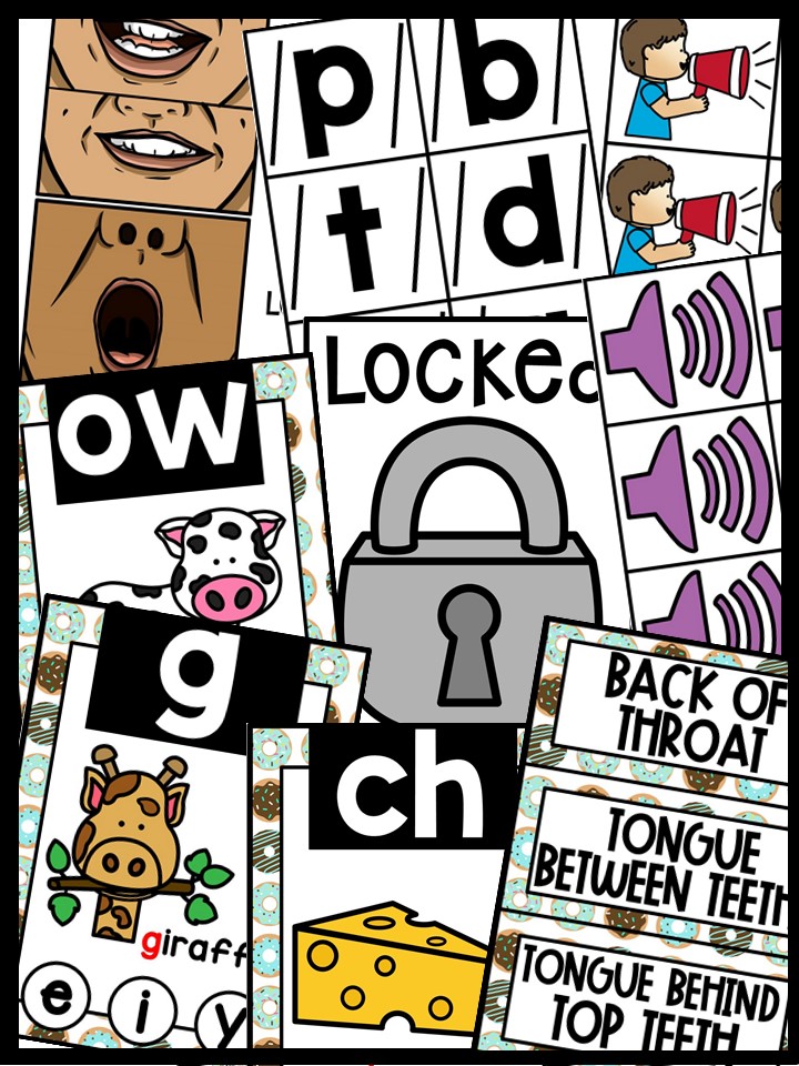 - 4 Locked Posters (Cover your sound wall. As you teach the phoneme uncover the cards beneath) 4 different versions. Comes in Color and B/W.