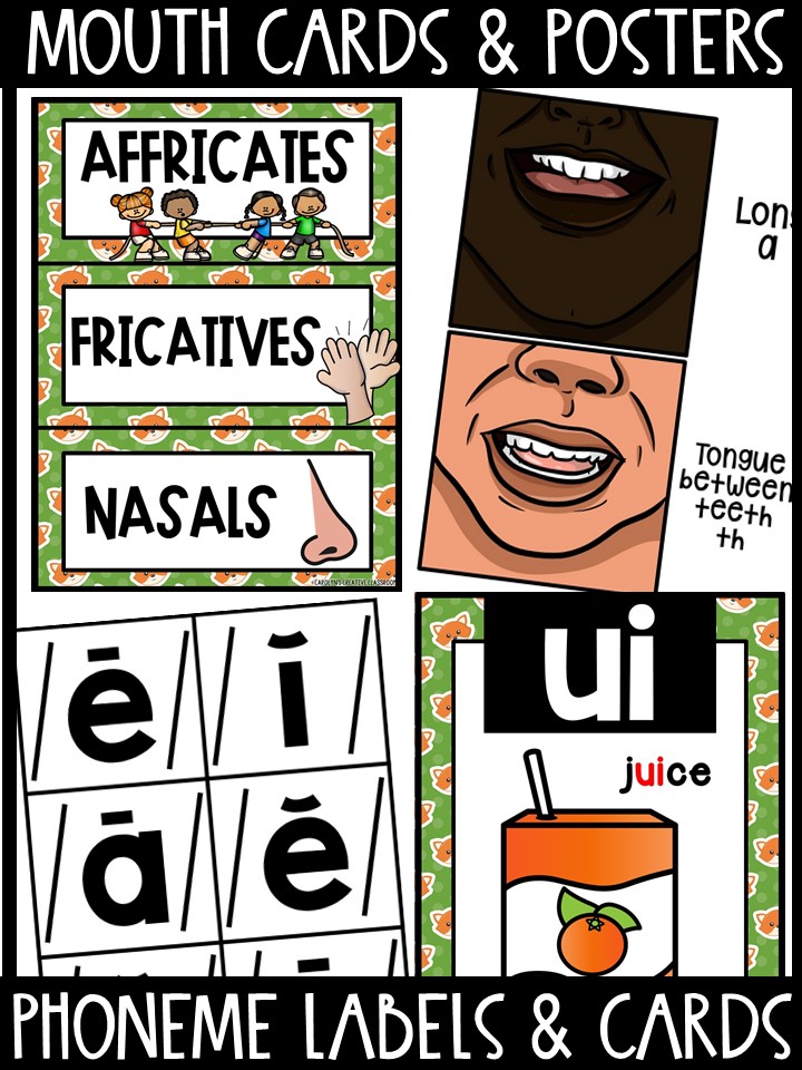 There are multiple ways to use these! Hang them on your sound wall, use them in a variety of centers or make them self correcting, or in a book (binded) to teach mouth positions during whole group or small groups!