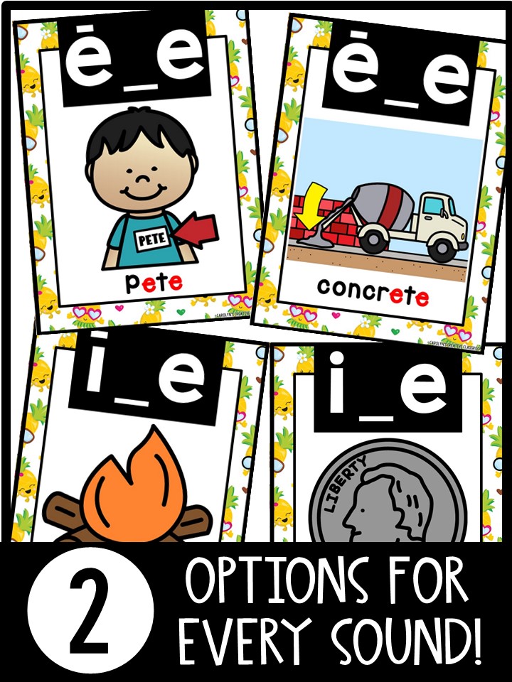 Each card displays the phoneme coordinating brightly colored image/images, and the appropriate text label with the phoneme in red.