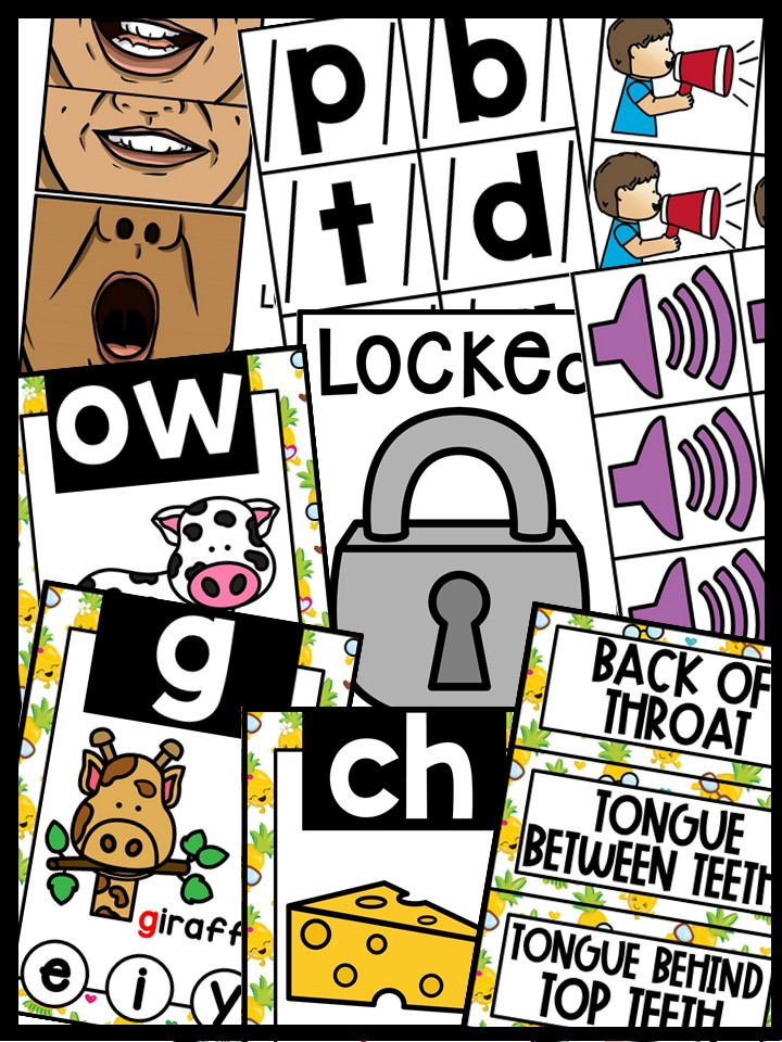 - 4 Locked Posters (Cover your sound wall. As you teach the phoneme uncover the cards beneath) 4 different versions. Comes in Color and B/W.
