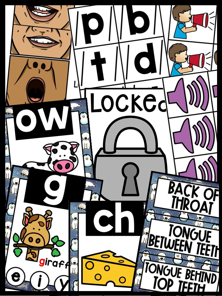 - 4 Locked Posters (Cover your sound wall. As you teach the phoneme uncover the cards beneath) 4 different versions. Comes in Color and B/W.