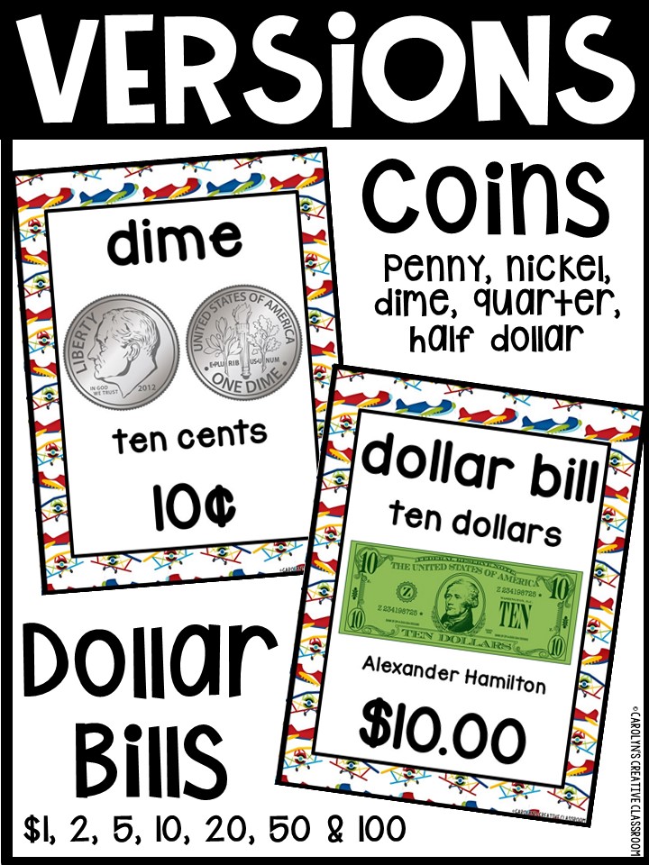 - Each Poster includes coin name, coin picture, value in both word and print. Dollar bills only have front side shown.