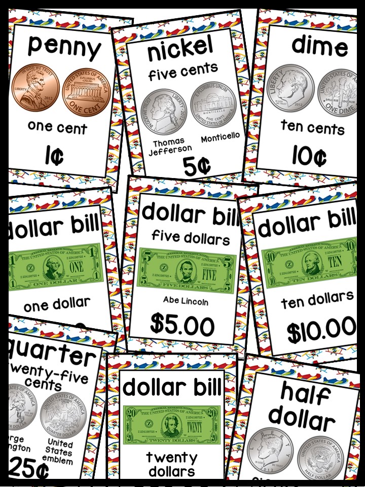 Use these money posters to teach coin and dollar bill recognition in a fun and engaging way. You can use the money posters and cards during small group, whole group, circle/rug time, and center time.
