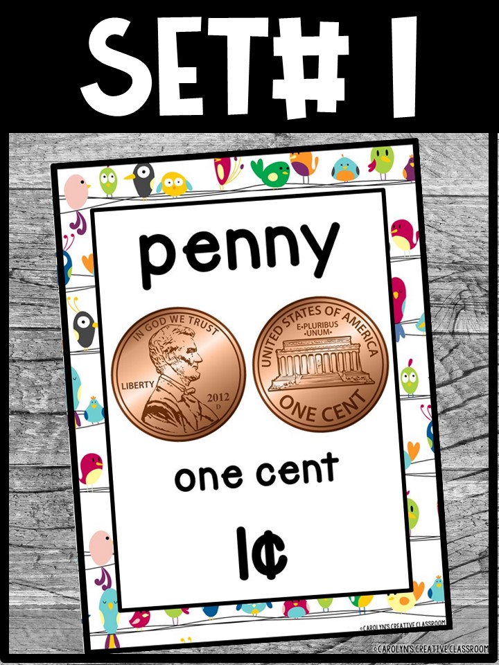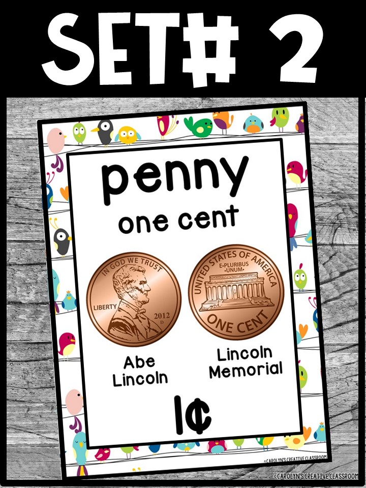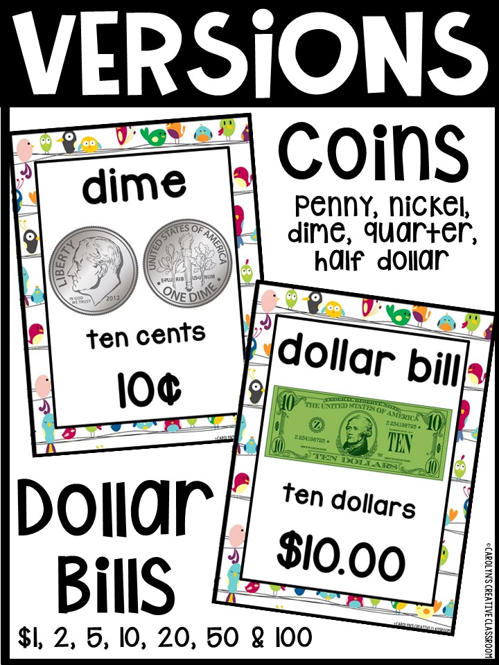 - Each Poster includes coin name, coin picture, value in both word and print. Dollar bills only have front side shown.