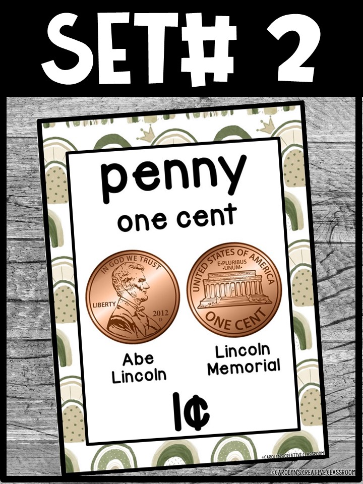 - Each Poster includes coin name, coin picture, value in both word and print. Dollar bills only have front side shown.