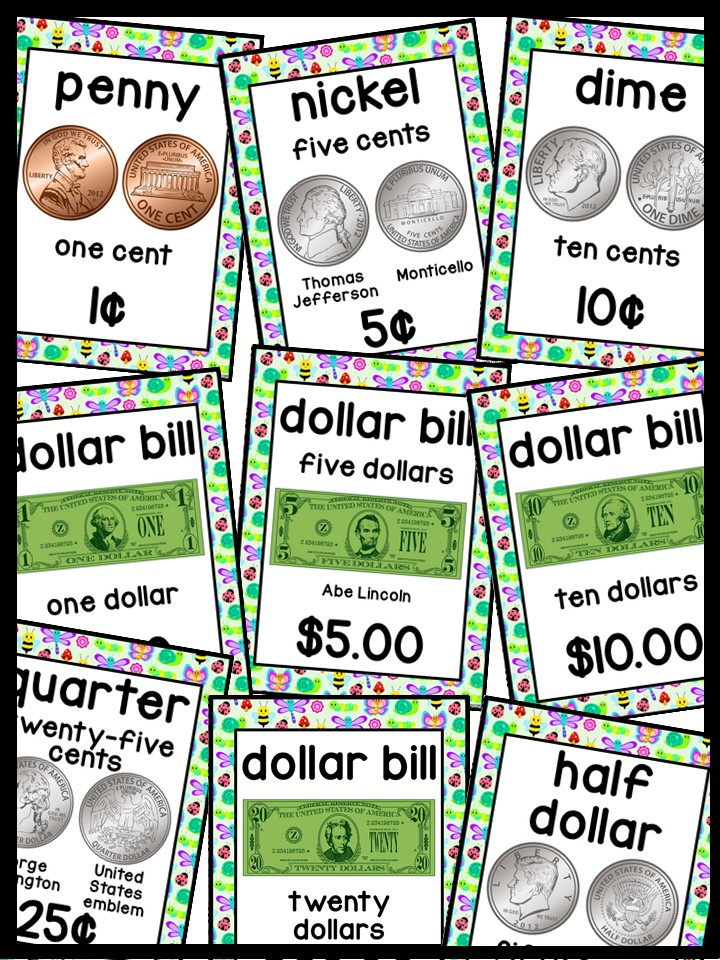 Use these money posters to teach coin and dollar bill recognition in a fun and engaging way. You can use the money posters and cards during small group, whole group, circle/rug time, and center time.