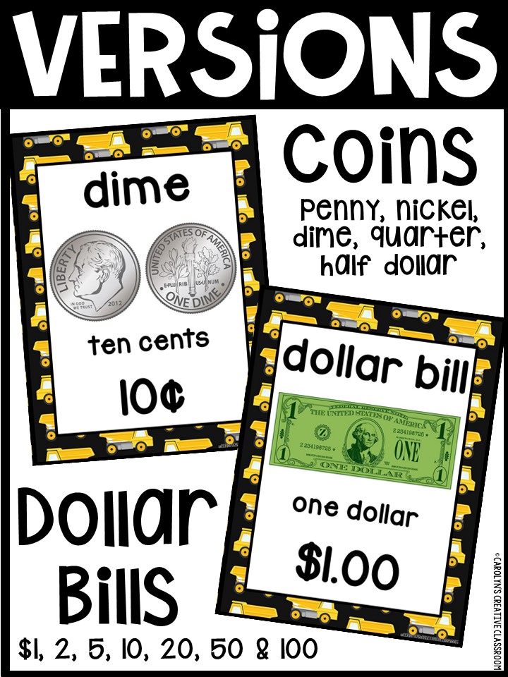 Use these money posters to teach coin and dollar bill recognition in a fun and engaging way. You can use the money posters and cards during small group, whole group, circle/rug time, and center time.