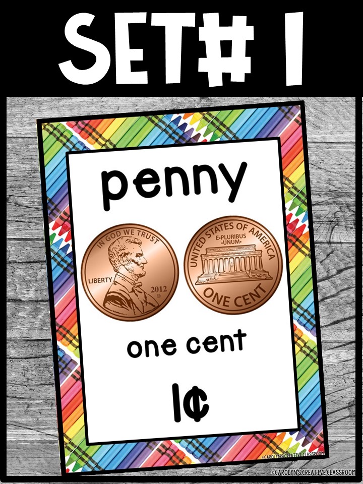 Use these money posters to teach coin and dollar bill recognition in a fun and engaging way. You can use the money posters and cards during small group, whole group, circle/rug time, and center time.