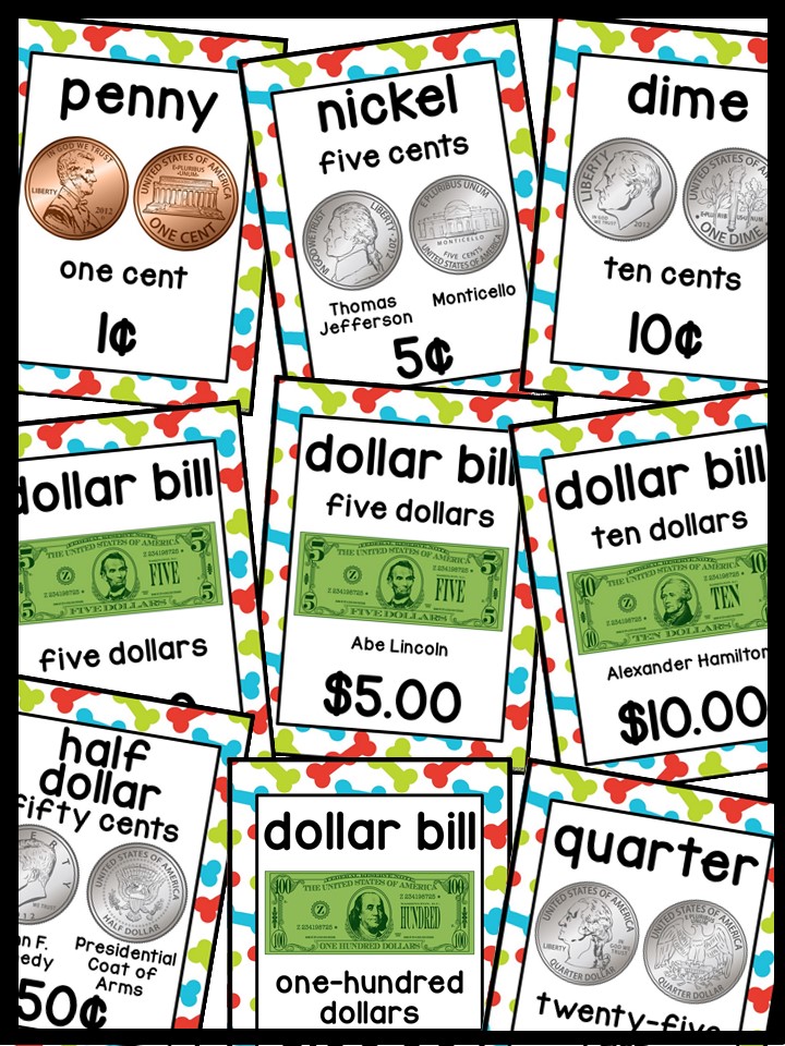 Use these money posters to teach coin and dollar bill recognition in a fun and engaging way. You can use the money posters and cards during small group, whole group, circle/rug time, and center time.