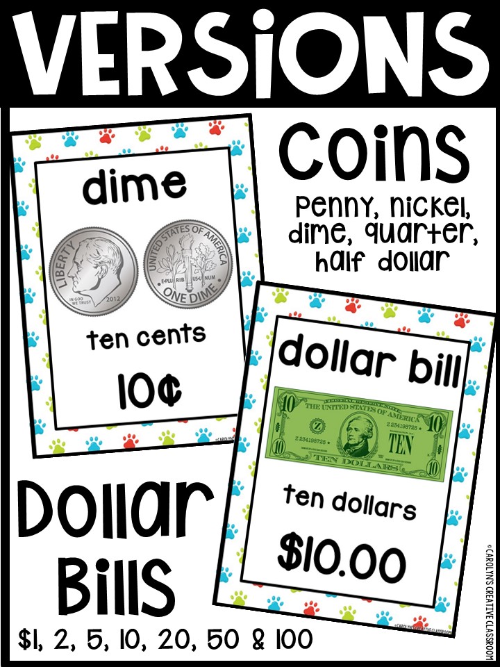Use these money posters to teach coin and dollar bill recognition in a fun and engaging way. You can use the money posters and cards during small group, whole group, circle/rug time, and center time.