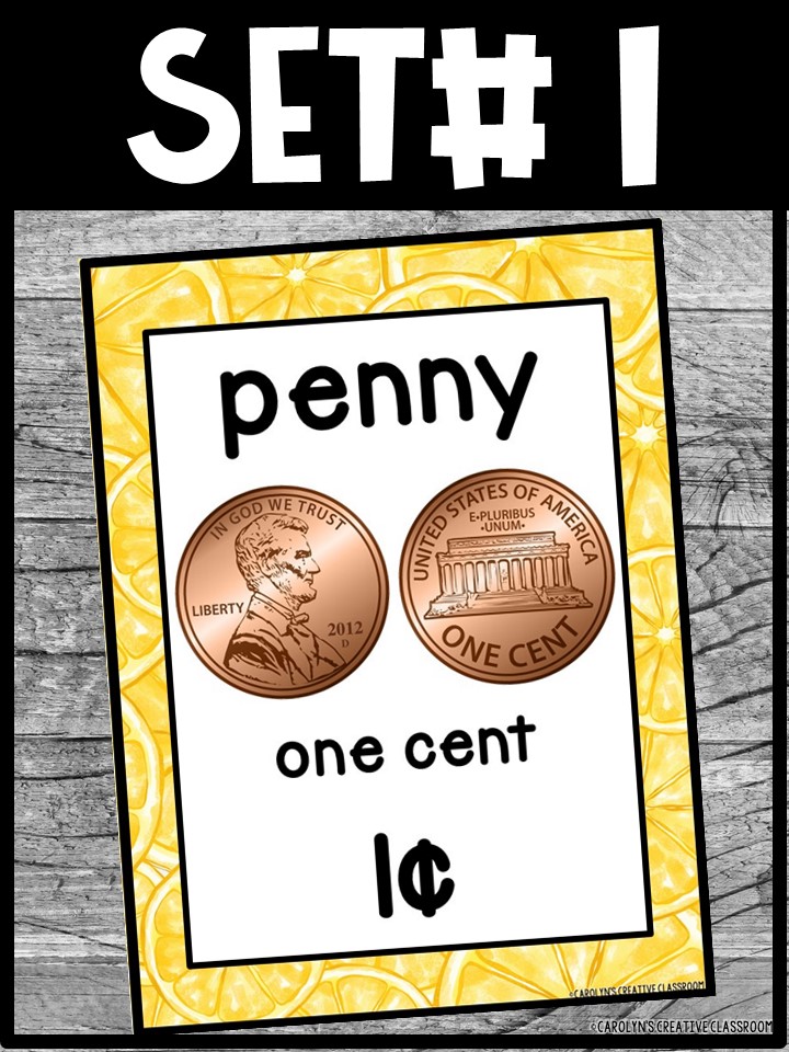 - Each Poster includes coin name, coin picture, value in both word and print. Dollar bills only have front side shown.