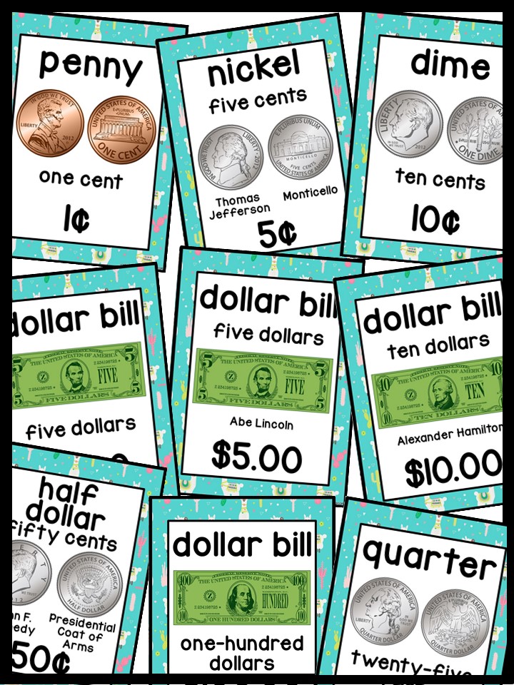 Use these money posters to teach coin and dollar bill recognition in a fun and engaging way. You can use the money posters and cards during small group, whole group, circle/rug time, and center time.