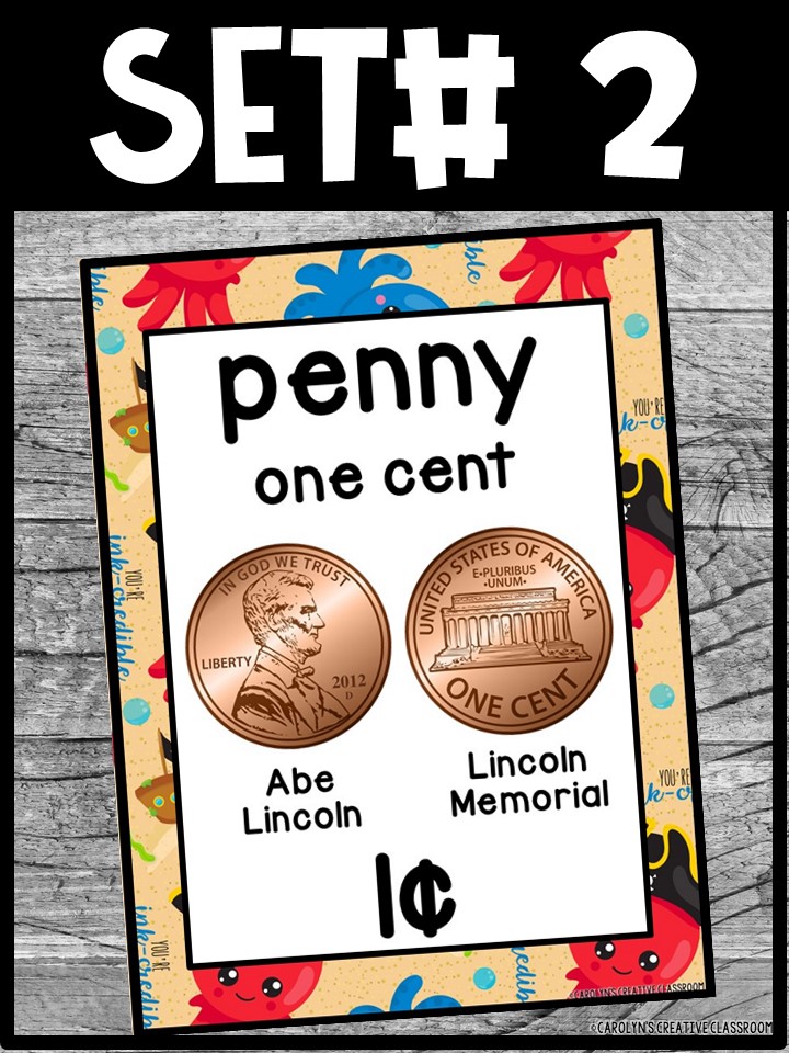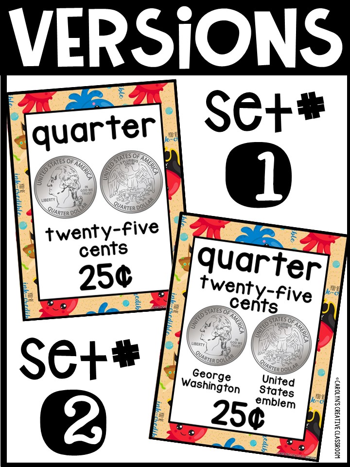 - Each Poster includes coin name, coin picture, value in both word and print. Dollar bills only have front side shown.