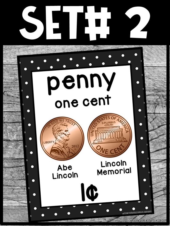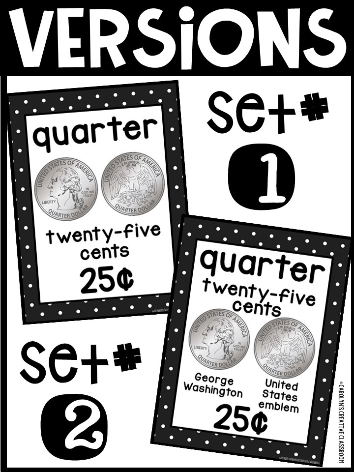 - Each Poster includes coin name, coin picture, value in both word and print. Dollar bills only have front side shown.