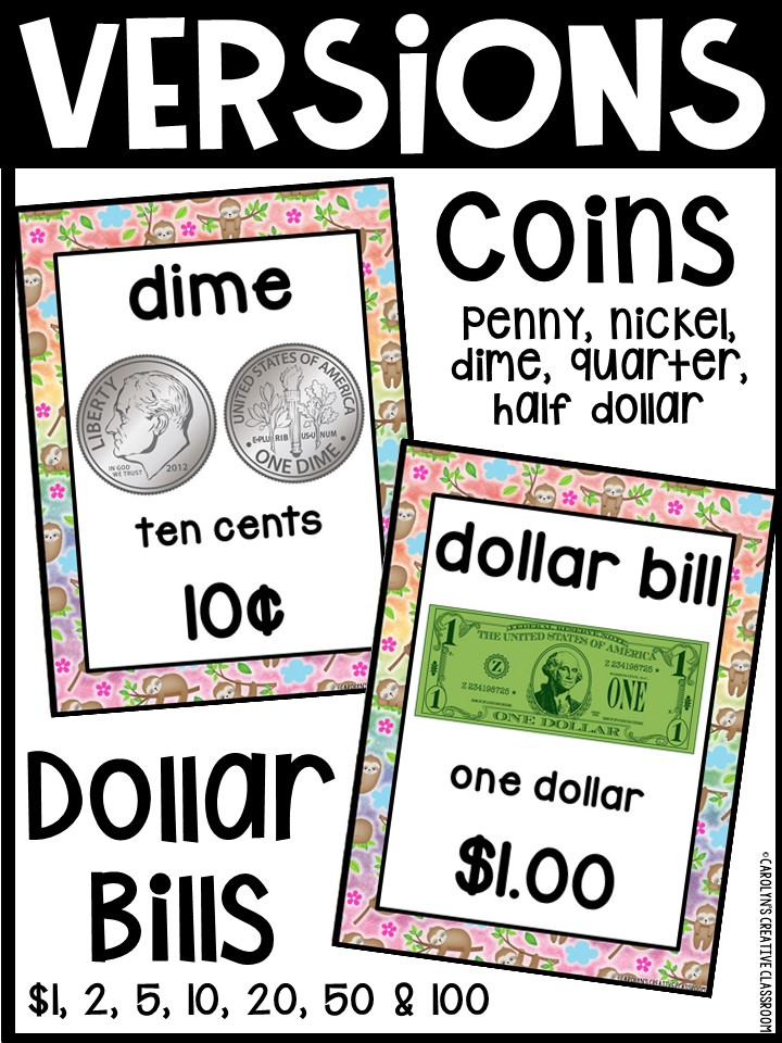 Use these money posters to teach coin and dollar bill recognition in a fun and engaging way. You can use the money posters and cards during small group, whole group, circle/rug time, and center time.
