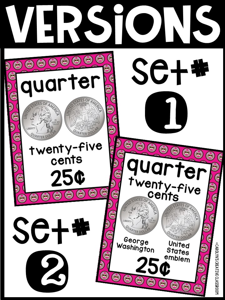 - Each Poster includes coin name, coin picture, value in both word and print. Dollar bills only have front side shown.