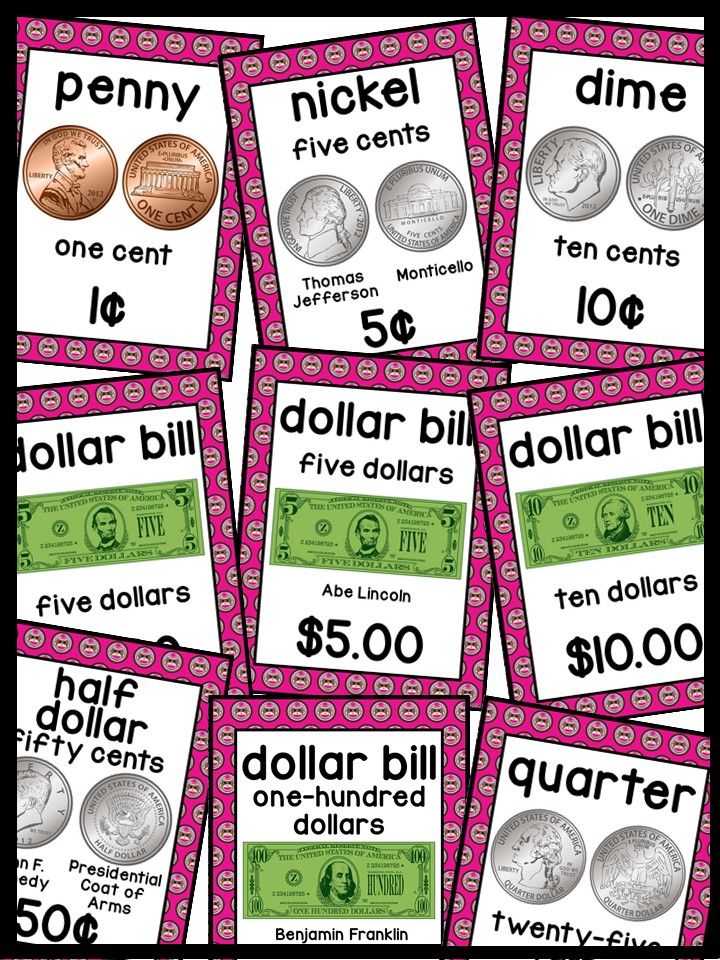 Use these money posters to teach coin and dollar bill recognition in a fun and engaging way. You can use the money posters and cards during small group, whole group, circle/rug time, and center time.