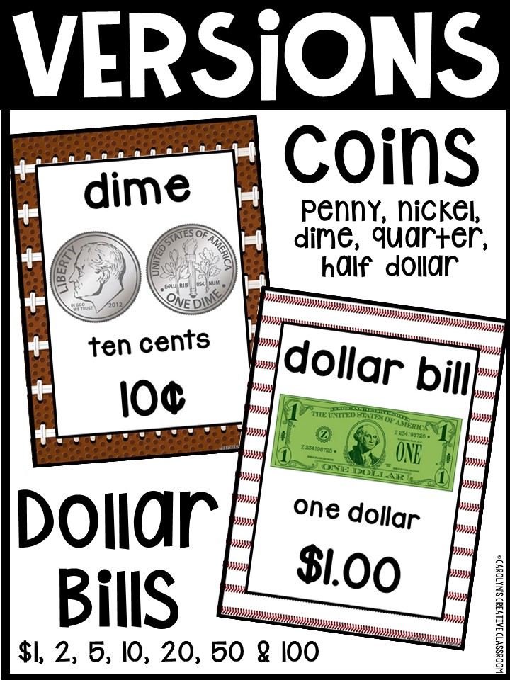 Use these money posters to teach coin and dollar bill recognition in a fun and engaging way. You can use the money posters and cards during small group, whole group, circle/rug time, and center time.