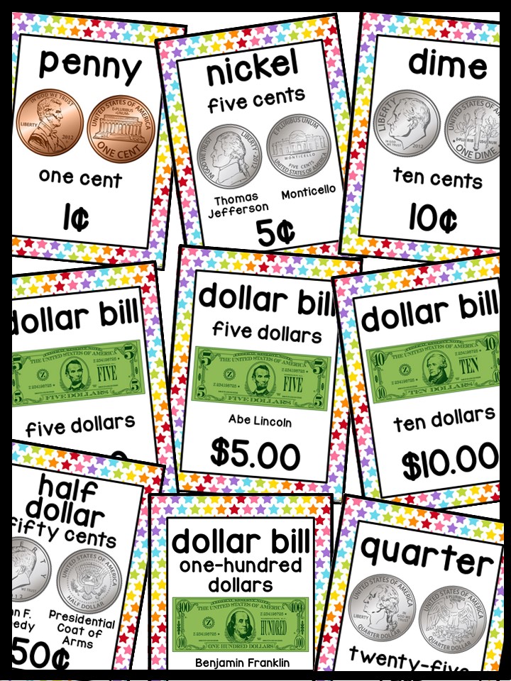 Use these money posters to teach coin and dollar bill recognition in a fun and engaging way. You can use the money posters and cards during small group, whole group, circle/rug time, and center time.