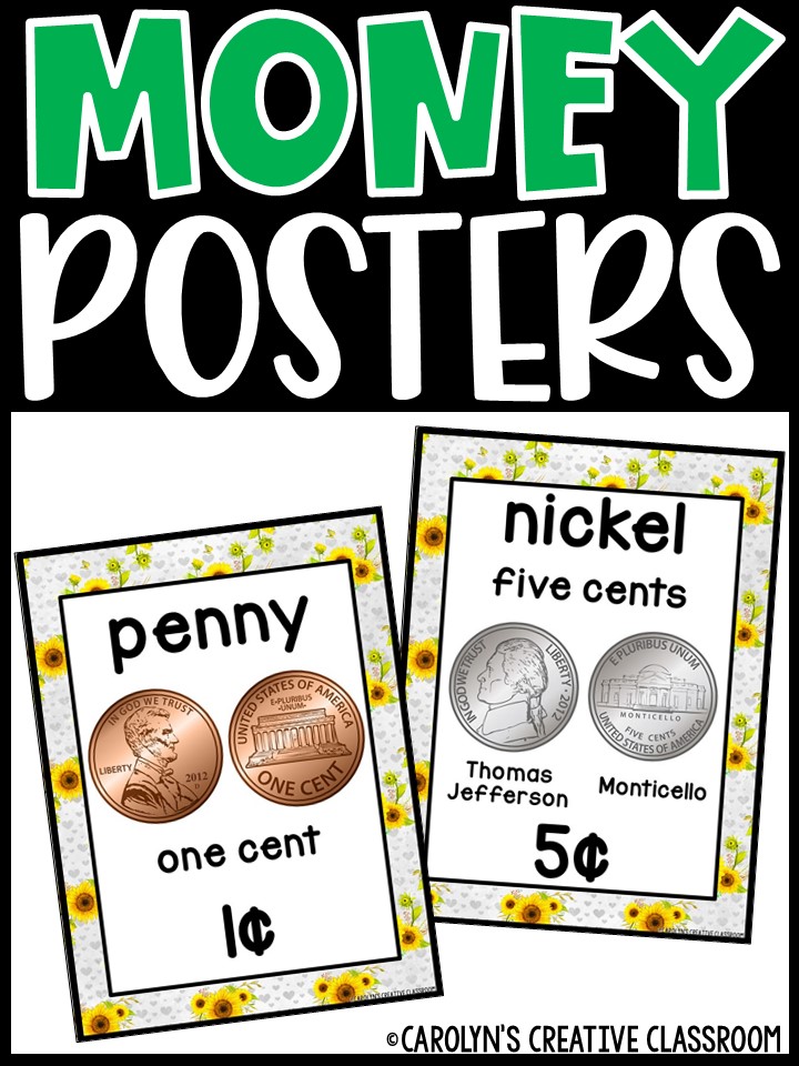 - Each Poster includes coin name, coin picture, value in both word and print. Dollar bills only have front side shown.