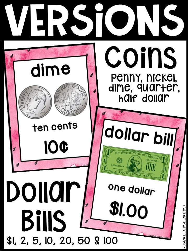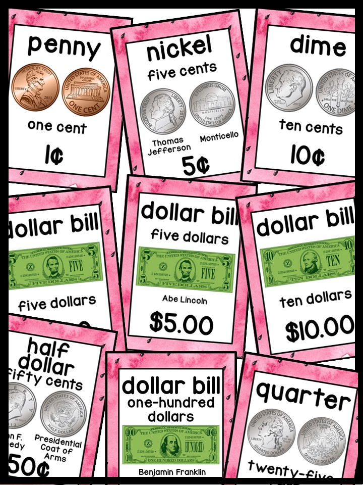 Use these money posters to teach coin and dollar bill recognition in a fun and engaging way. You can use the money posters and cards during small group, whole group, circle/rug time, and center time.