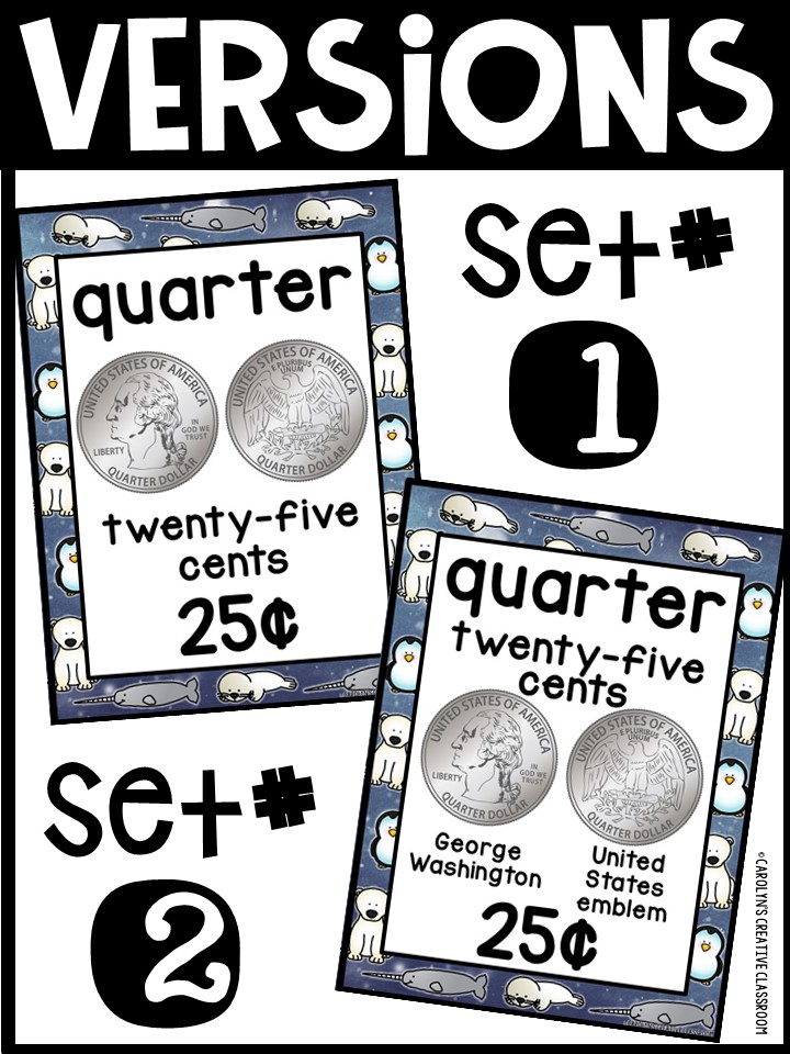 - Each Poster includes coin name, coin picture, value in both word and print. Dollar bills only have front side shown.