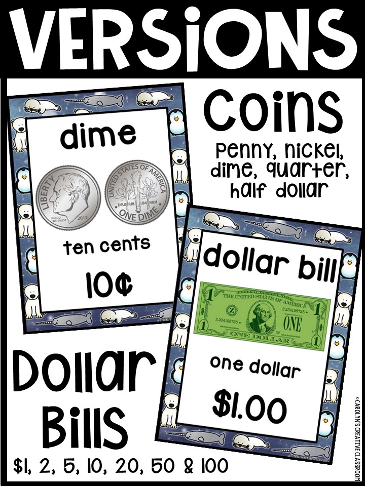 Use these money posters to teach coin and dollar bill recognition in a fun and engaging way. You can use the money posters and cards during small group, whole group, circle/rug time, and center time.