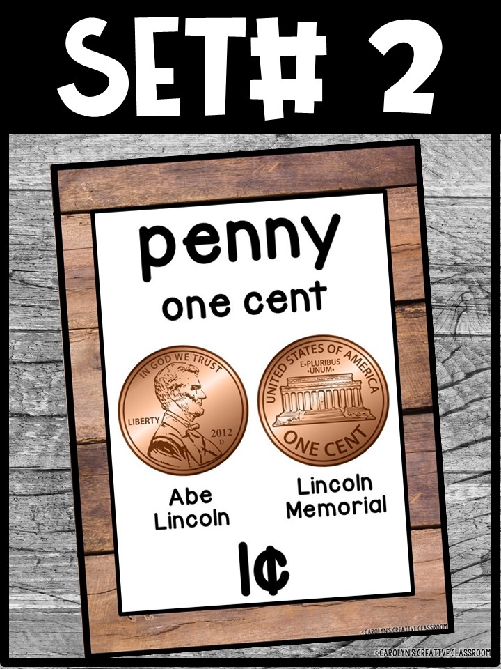 - Each Poster includes coin name, coin picture, value in both word and print. Dollar bills only have front side shown.