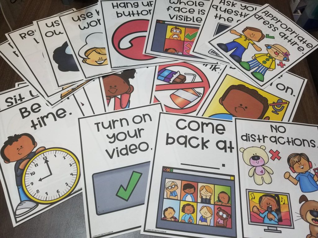 Are you distant learning this year? Are you looking for posters to hang up to review the rules and expectations during your Zoom/Google Meets lessons? Need a visual reminder for students? Look no further!