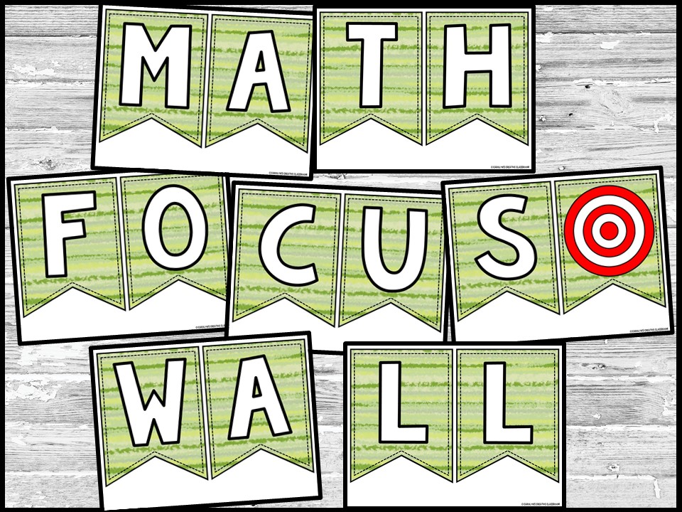 With this set, you will get the banner that says ” Math Focus Wall” . (Half sheet size)