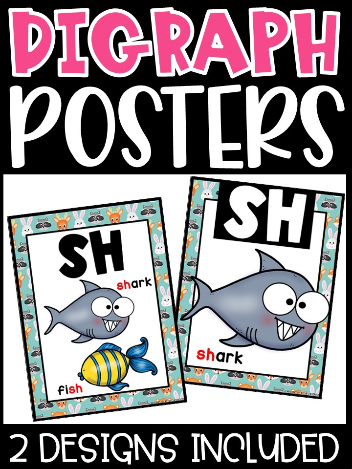 Foster digraph recognition and phonics development with these posters. Each card displays the digraph, a coordinating brightly colored image/images, and the appropriate text label.